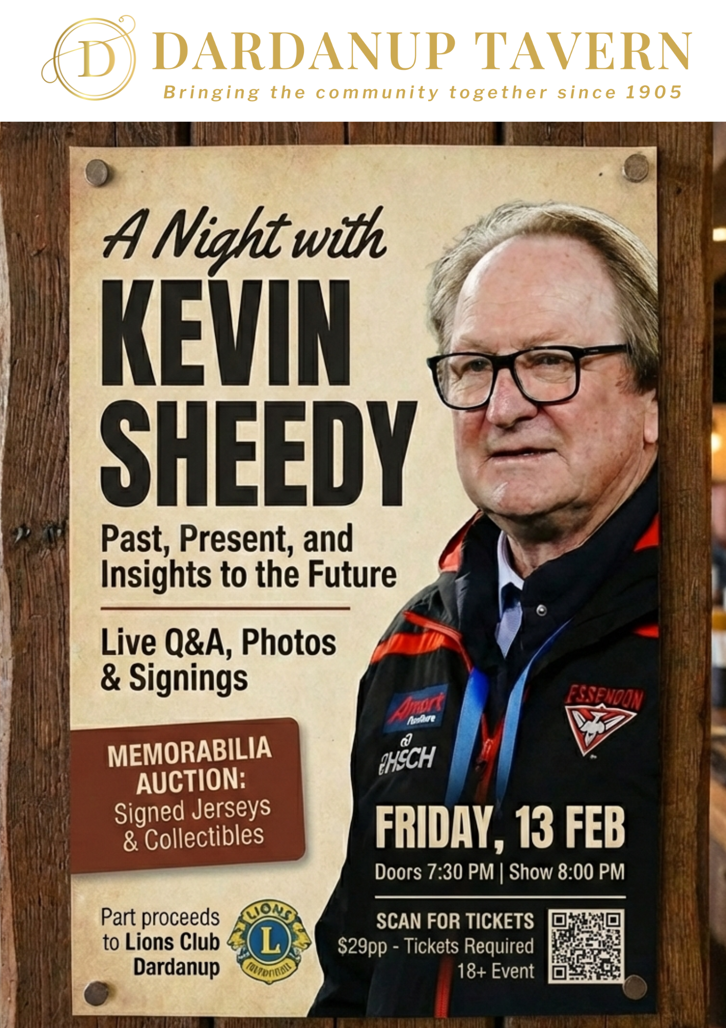 Get ready for a massive night at the Tavern! We are thrilled to host one of the most iconic figures in AFL history—the one and only Kevin Sheedy.